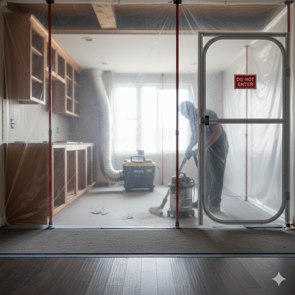 • Dust control plan with HEPA scrubbers and negative air if needed